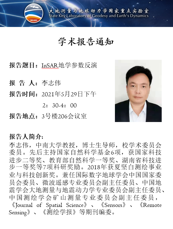 2021年5月29日瓦力游戏官方大地测量与地球动力学国家重点实验室学术预告